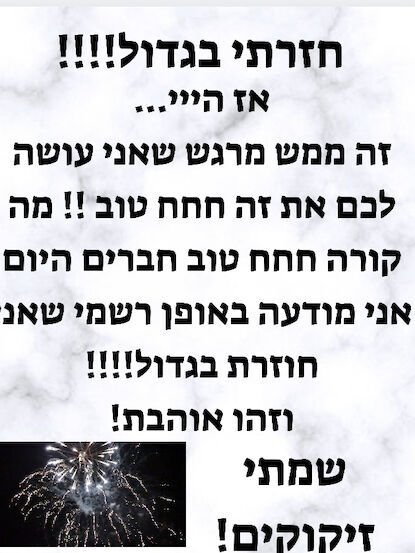 רק מי ששם לב אני השקעתי ממש שמתי זיקוקים |