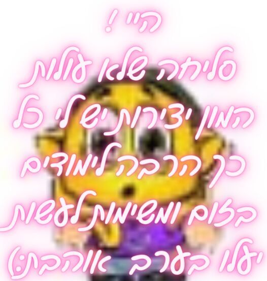 סליחה על זה שאני לא מעלה כל כך הרבה גם אתם אלה שתמיד מגיבים לי ומפרגנים לי זה ממש לא מגיע לכם אז אני מתנצלת מראש ו .. עוד מעט אני ואודיד12 מעלות את המנצחים של ההגרלה עוד לא ערכנו את זה אז יש לכם זמן להגיבבב יאייי איזה כיף בקיצור , סליחה אוהבת אתכם אל תשכחו לעקוב אחרי המיקמק השני שלי: קישור אליו אוהבת ומעריכה המון: אודיד1296 *סליחה!