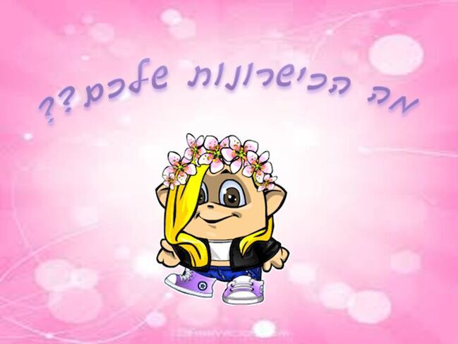 אני יודעת לצייר מושלם על דף! אני ספורטאית ואני גם בהתעמלות קרקע ברמה גבוהה! אני חכמה אני מכינה חידות למשפחה והם לא מצליחים לפתור חח! וחוץ מזה יש לי כישרון בלשחק במחשב חחחחח טוב נראה לי שלכולם יש את הכישרון הזה (ממליצה על הקהילה שלי) |