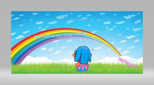 מהמם!! הערה: בתמונה כתבת לעולם לא תמצא קשת בענן עם תסתכל *למעלה* חח אבל חוץ מזה זה מהמם!! |