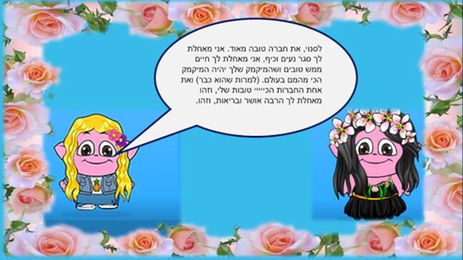 י לוליים שלי, איך החיים?. אז היום העליתי את בלוג הפרס, עשיתי בעצם ברכה לסנוי20 שהיא חברה מאוד מאוד טובה שלי ואני מקווה שהיא אהבה את זה והתרגשה. והמשימה שלי בשבילך היא.... ליצור יצירה על זכרונות שלך ממאה שבעים ומשהו ימים שלך במיקמק. לגבי העניין שאת לא יודעת להעלות תמונות, אל תדאגימ אני אתקשרה אלייך אני אלמד אותך. (כי אנחנו חברות מהכיתה) וזהו מקווה שאהבתם, ומקווה שסנויוש המהממת אהבה. ו....