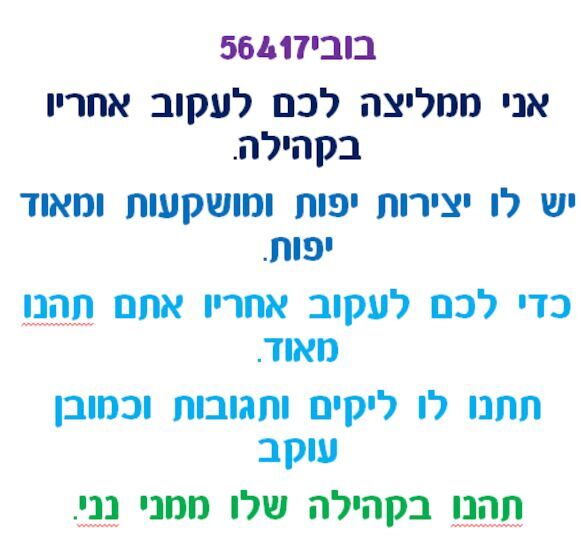 ועם אתם טובים ומקשיבים לה קודם כל תודה רבה לך ותודה על שתיים עשרה עוקבים זה יחסית דיי טוב מהמלצה לאנשים שלא עוקבים אחריי בקהילה אבל יש לה ארבעים ומשהו עוקבים בבקשה תעקבו אני רוצה להתחיל לעלות יצירות פשוט לא עולה לי אז תעקבו אחריי בבקשה!!! |