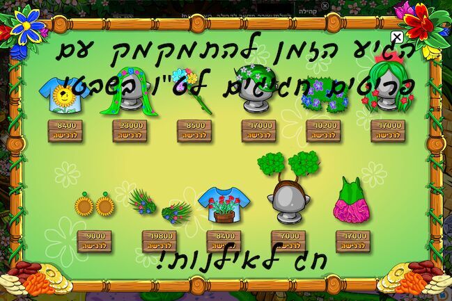 היי מיקמקים, אז היום יצא קטלוג חדש שנמצא ביער למי שלא יודע...והוא של.....................ט''ו בשבט!!! ייאי! אז יאלה! לכו ליער והתחילו להתמקמק עם בגדים חדשים וירקרקים לט''ו בשבט! אז יכול להיות שב- ט''ו בשבט תעלה יצירה בנושא. חג שמח לכם! ומזל טוב לעצים! |