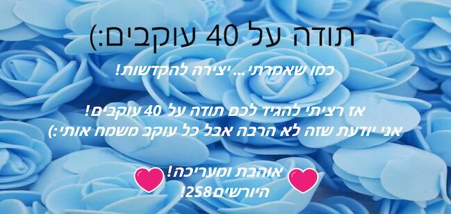 מהממת אלופה כל עוקב מגיע לך תודה על ההקדשה |