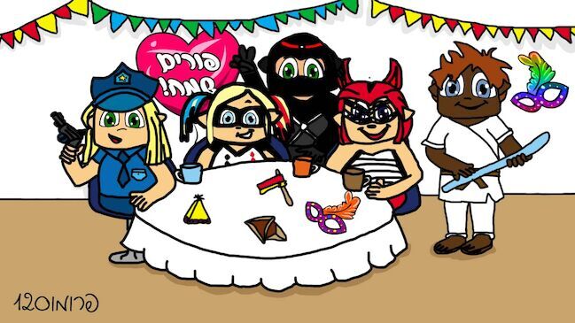 היי לכולם! חג פורים מתקרב אלינו(: אני מאוד אוהבת את חג פורים! מאז ומתמיד היתי מכינה תחפושת כמה שיותר מקורית (ואף פעם לא קנויה), במשך חצי שנה היתי מכינה(: והנה מגיעה עוד שנה! ופורים מגיע! אז לכבוד זה הכנתי ציור שהשקעתי בו בערך כמו בתחפושת(: בוכההXD בכל מקרה בציור יש מסיבת תחפושות! יש שם: שוטרת, הארלי קווין, נינג'ה, שטן ושחקן גודו(: אזזזז במסיבת תחפושות יש שולחן עם אוזני המן(: ושתייה(: ורעשן, ומסיכה! אזזז מאחורה יש קישוטים! וזהו, אשמח אם תרשמו בתגובות למה אתם מתחפשים! אני אספר מה התחפושת שלי כשפורים יגיע(: וזהו חג שמח וביי!