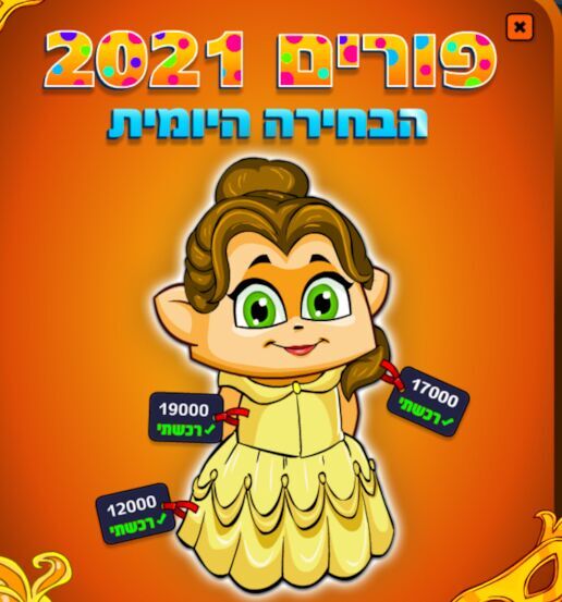 אז לפי ההשערה שלי (99% שזה נכון) שמה שנבחר זה יחליף את נסיכת בל במה שהרוב קבע בסקר!!!! קישור להצבעה של השודדי ים: פה אם לא עובד אז תכנסו מהקישור הזה אם גם זה לא עובד אז פשוט תכנסו ל"מה חדש" וזהו(אני בכוונה לא שם קישור של ההצבעה לבנות כי כנראה היא נגמרה)