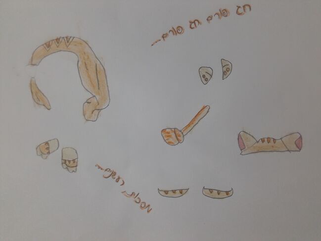 אז.. אני עיצבתי פריטי תחפושת חתולית: שיער שרית, תיק לצד, כפפות, נעליים, אוזניים- וכובע.