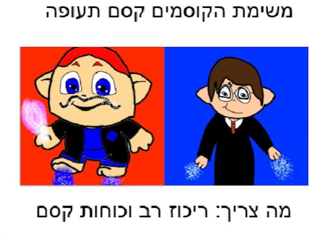 היי ממים אז זה בלוג הפרס של הקוסמים איך אני אוהבת את ארי פוטר!!! אז מה רואים בתמונה? יש את הארי ואת חבר שלו שהוא קוסם מתלמד שלומד קסם תעופה והארי היה צריך לעזור לו קצת אז הוא נתן לו קסם חיזוק, לקסם חיזוק צריך: כוח בידיים כוח רצון לעזור למי שצריך עזרה וכוח קסמים. אז הקוסם המתלמד מצליח לעוף בזכות הארי אבל בו זמנית מצמיח לעצמו שפם שחור מצחיק כזה. איזה מצחיק גם לקוסמים יש טעויות בקסמים. איזה סרט הכי אהבתם בהארי פוטר אני את כולם!
