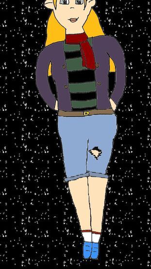 היוש עיצבתי בגדים שכוללים ג'ינס כחול קצר סוודר בצבעי ירוק שחור ומעל הכל מעיל סגול מקווה שאהבתם