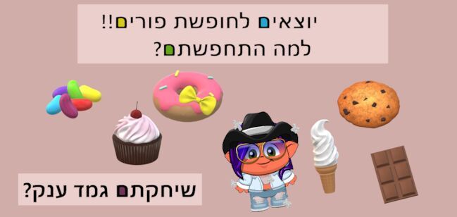 אני עשיתי גמד וענק ואני הכי אוהבת עוגיית שוקולדצ'יפס והתחפשתי לעוגי פלצת!! |