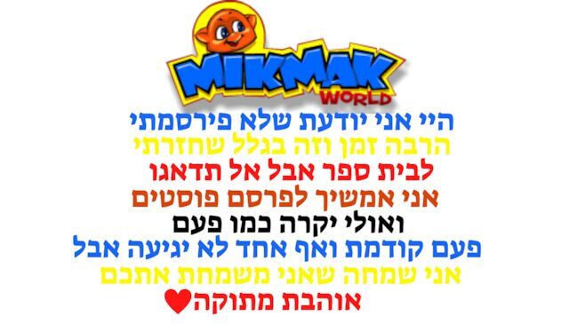בפוסט הבא שכנראה היה מחר עם לא היו לי תקלות אז אני אקבע ימים של פוסטים