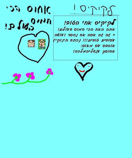 קיקיס הוא גם אחיס סה אומר סגם אנחנו אחיוס! (כתב תינוקי) |