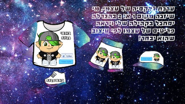 היי חצילונים! בגלל שעשיתי הגרלה אז הלכתי לתגובות לראות מי הגיב, הסתכלתי קצת על זה וראיתי שכתבתי ערכת עיצוב אישי או משהו כזה, ואז חשבתי, יש מיקמק שלא יודעים מה זה ערכת עיצוב אישי! אז אמרתי לעצמי שאם אני כבר שם, למה לא להכין דוגמה? אבל רגע, אין לי תמונות שלכם! אז עשיתי לעצמי, אם זה יפה תעשו לייק, אוקיי, אז מי שיזכה מקום ראשון או שני, (כשאני אפרסם תוצאות) יכתוב בתגובות מיקמק, נגיד, שער שער ארוך ורוד, שמלת פרחים, וכמובן אני אעצב אותו ואעשה את מה שהוא יבקש, נשמע מגניב נכון? אז קדימה! רוצו להשתתף!! |