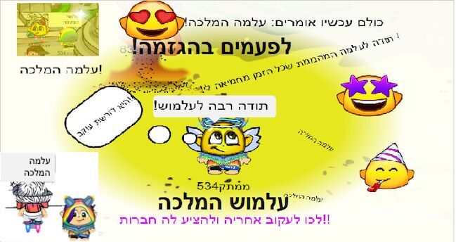 (אזהרה: זאת הולכת להיות יצירה מאוד ארוכה תהנו!) היי חברים מה קורה?! אז רק שתדעו עכשיו השעה דקה ל22:00 שאני כותבת את זה וב22:30 אני הולכת לישון אז בואו נתקתק אז זאת יצירה לעלמוש שמחמיאה לי ולקיווי אז תודה רבה עלמוש! מה שנקרא: I IOVE YOU ALMA אני מקווה שכתבתי עלמה נכון אבל בקיצור שתדעי שכמעט בכל יצירה החמאת לי ולחברותי וזה משמח אותי!!!! אז עלמוש אני מתה עלייך את עשית לי תגובות מהממות וכל עוד את נוכחית ביצירות שלי אני הכי שמחה שבעולם!!! אז עלמה אני מאחלת לך בריאות, אושר, יושר, כושר, שמחה, אהבה, והכי הכי ב י ט ח ו ן ! ! אז עלמוש את אלופת האלופים ואני ממש שמחה שאת רשומה לקהילה שלי ואני שמחה שאתם כל מי שרואה את היצירות שלי עוקב אחרי!! אני מאוד משקיעה כאן!!! ואם אתם חדשים אז..... היי לכם לי קוראים ממתק ולי יש ערוץ יוטיוב שאני לא מעלה שם שום דבר אבל שיהיה לי!! והמטרה שלי זה להגיע ל90 עוקבים!! אם תטיילו ביצירות שלי תיראו שאני מעלה יצירות על חמשים עוקבים שלושים וזה אז אני מקווה שאני אגיע ל90 עוקבים! ועכשיו........... הגיע הזמן לקצת הסברים על היצירה!!!!!!! טוב אז כמו שאתם רואים יש לי פה את היצירה (היא לא כל כך מושקעת בגלל שזה כולה חמש דקות) של עלמה4404 אני מקווה מאוד שלא טעיתי בשם שלך!!! אבל באמת כולם לכו ותעקבו אחריה היא בטח ממש משקיעה ואני עכשיו שמה לכם קישור!!! נ.בhttps://www.mikmak.co.il/gallery?id=0&ctgId=0&author=%D7%A2%D7%9C%D7%9E%D7%944404 בהצלחה לך בקהילה! ויאלוש? ביוש!!! ממתק534