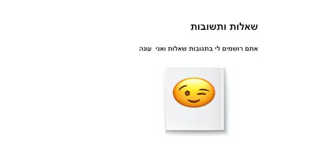 מה הסרט האהוב עלייך? את אוהבת את החורף או את הקיץ או את האביב? את אוהבת בשרי או חלבי? איזה שיעור את אוהבת? |