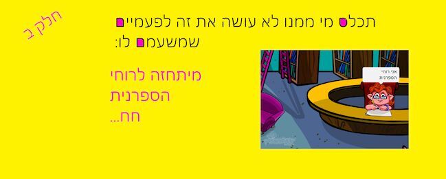 היייי ואנחנו עכשיו בחלק ב ואני חושב שזא העובדה הכי נכונה שלי שתכלס מי ממנו לא מתחזה לרוחי \ רוחמה איך שתרצו זה אותו שם פשוט חח... ונהיה הספרנית הראשית אז אם אתם מסכימים עם העובדות שלי תכתבו בתגובות למטה ותרשמו לקהילה כי יהיה עוד חלקים אוהב המון המון 1אוחנה1