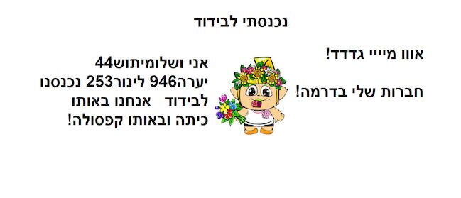 בקיצור חלפה 2 דקות והורה של חברה שלי באה לאסוף כמה בנות את יערה 946 ועוד חברות שאין להם מיקמק נשארנו ארבע בנות בכיתה ! אני כזה יורדת על שלומיתוש44 שהיא הולכת ברגל עשינו צחוקים זה היה כיף ! כעבור כמה דקותה הקפסולה השניה הצטרפה אלינו וצחקנו על ההצרות ברריאות כי היה כזה ציור מוגזם ממש ! אחרי זמן כל הבנות ההורים הגיעו ככה בכיף וחזרנו לבתים! וכרגע אני פה שולחת יצירה! וכבר כמה חברות שלי עושות בדיקה היום! אולי גם אני אני פשוט כרגע לבד בבית !