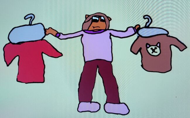 ציירתי את המיקמקית שלי מתלבטת בין שני חולצות אה ויש לי בעיה במחשב זה לא נותן לי לעלות משם דברים והתוכנת צביעה שלי במחשב אז מצטערת שזה קצת מטושטש וזה ביי