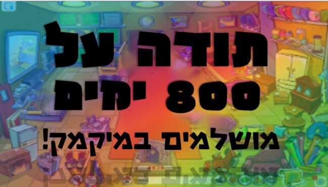יאווווווו!! קודם כל- עריכה מ-ו- ש- ל- מ- ת!!!!!!!!!!! מזה הכישרון הזה???? דבר שני- מזל טובבבבב!!! 800 זה מלא!! איזה כיף:) מאלחץ לך שתמשיכי להיות מהממת ולעשות דברים כיפים במקמק וכמובן להנות:) אוהבת אותך מלאאאא שוקו:) |