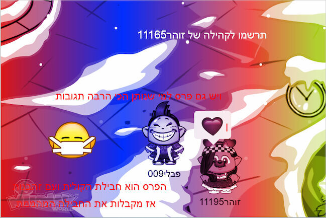 ואוו מהמם תודה רבה אני ממש אשמח שתרשמו לקהילה שלי וגם של פבלי רק מי שנרשם יכול לזכות בפרס וגם הפרס נשמע ממש שווה אני ממש הייתי רוצה אותו |