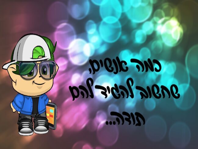 טוב, אז כתבתי את כולכם ואז נמחק לי........ אז בכל מקרה אני מודה, לכולכם אם עשיתם לי לייק, הגבתם, או עקבתם, ואפילו עם רק צפיתם, אני חייב לכם תודה ענקית!!! שתמכתם, שעודדתם, ששימתחם, ושעזרתם לי לכל הדרך הזאת, בקיצור: מההה?!חשבתם שזו כל היצירה?! חחחחח, טעות ע-נ-ק-י-ס-ט-י-ת! וואי באמת חשבתם את זה?! אז זה שזה ממש אבל ממש לא נכון! היום אני פותח ופינה חדשה!! (ומקורית) פינת הקהילה, אתם בטח תגידו, ״מה זה?! כבר יש קהילה במיקמק?״ נכון בדיוק על זה אני מדבר, בכל יצירה של פינת הקהילה (שתהיה בערך פעם בעשרה - עשרים ימים אתם תכתבו בתגובות, את קהילת השבוע, שהכי הערצתם השבוע, המיקמק שהקהילה שלו תזכה ברוב קולות, יקבל שני עיצובים ו5 הקדשות, אז.... היום זה מתחיל!! כתבו בתגובות, ואם הגעתם עד עכשיו (אף אחד לא באמת קורא תיאור.....) אז תכתבו בתגובות: אנשים היום... מתחת לתשובה שלכם!! יאללה בייייי!!