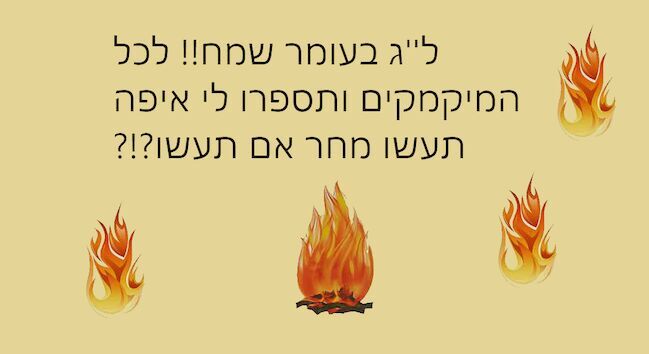 ל"ג בעומר שמח! לא לי.. אני בבידוד ביכביכ |