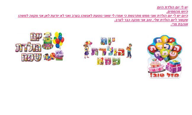 היום יש לי יום הולדת ואני ממש מתרגשת אז אני מקווה שהיום הזה יעבור בטוב.