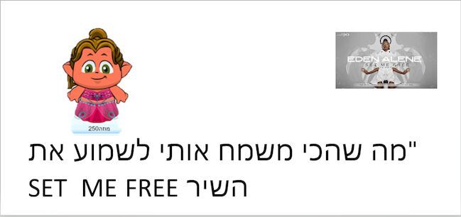 "מה שהכי משמח אותי ..." זה לשמוע את השיר SET ME FREE השיר שעדן אלנה תשיר היום בחצי הגמר הראשון של האירוויזיון ממליצה לכולם להצביעה לישראל