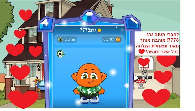 לחברי הטוב גרג7778! אוהבת מאוד ומאחלת הצלחה בכל מעשי ידיך! אוהבת שירה.
