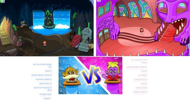 היי אני יודעת שלא רואים את הפתרונות אז הינה הם באים: 1.בג'ונגל 2.בתחנת המשחקים שבחלל 3.במטאור שבפארק 4.ביערות מיקמק (מיקום מדויק בסרטון) 5.בקרקעית הים (יש היקף אדום) 6.במיק אקספרס 7.במעבדה 8. לחזור לראש העיר!! ==== 1. במרכז הריקודים שבקלאב 2. בביוב שבמערב העיר 3. בחוף הים 4. במיקניון - בקומה השנייה 5. בעירייה שבעיר 6. בחנות הממתקים שבמערב העיר (בפנים) 7. לחזור למיקיאוולי שמחכה בקרחת היער לקבלת הפרס! |