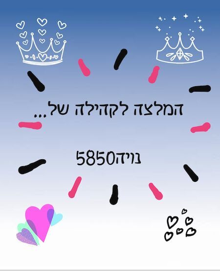 היוש כולם מה נשמע?! מה קורה?! אצלי בסדר אז לפי הכותרת הבנתם שאני עושה המלצה לקהילה של זוכה אבל במה היא זכתה אני אסביר הכל. טוב אז ההמלצה היא לקהילה של נויה5850 אז נויה בעצם השתתפה בפינה החדשה שלי (תלכו לראות אחרי זה את היצירה זה שתי יצירות אחורה אני פשוט לא יודעת לשים קישור) והייתה בין הראשונות שאנו נכון אז אני לפניי זה הסתכלתי בקהילה שלה והיא קהילה מהממת והמלצתי על הקהילה לא רק בגלל הזכייה. טוב נחזור לנושא אז לנויה יש קהילה מושלמת ומליון עוקבים. הקהילה שלה יפה ומאוד מושקעת. רואים שהיא בן אדם שמשקיע והיא מציירת נמושלם ועורכת מושלם טוב הבנתם. אז יש כבר זוכה שאני מכינה לה עיצוב. תנו לייק ועם אהבתם אשמח לעוקב. אוהבת לוסי5044
