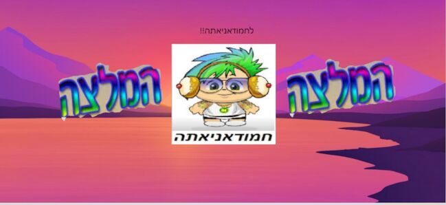 חמודאניאתה עשה הגרלה שעושים על חמודאניאתה המצלה והמלצה הזוכה תקבל המלצה על המיקמק שלכך חמודאניאתה הוא חבר טוב מיקמק טוב יש לו תוכן איכותי מלא דברים טובים טובים אפילו הוא הגיב לי על היצירה האחרונה שלי אז כל הכבוד חמודאניאתה תמשיך כך!!