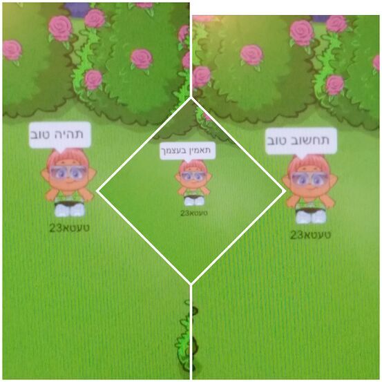 היי כולם! פליזז תמונת היום... אז היום המשפט הוא.................... " תחשוב טוב, תהיה טוב ותאמין בעצמך" מה הפירוש? אם אתם למשל רוצים להתקבל למגמה או לעבוד במקצוע מסויים, ויש לכם דרך ארוכה, הינה כמה טיפים שתוכלו לקחת: תחשוב טוב- לחשוב טוב מול כל צעד וככה תוכלו ללכת בדרך הבטוחה והטובה ביותר בשבילכם תהיה טוב- תהיו טובים לכל מי שאתם פוגשים בדרך, ככה הדרך תעבור לכם בקלות. והכי חשוב תאמין בעצמך- תאמין שאתה מסוגל להכל וכך, תגיע לכל מטרה שתציב לעצמך. בהצלחה בדרך! אוהבת##