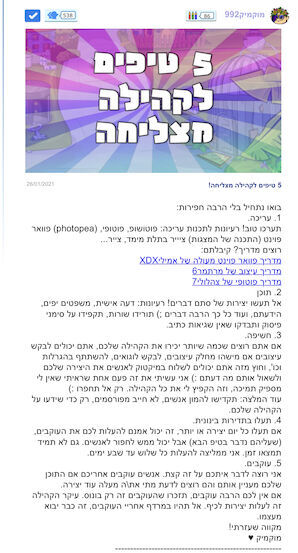 חמש טיפים לקהילה מצליחה! (של מוקמיק992)
