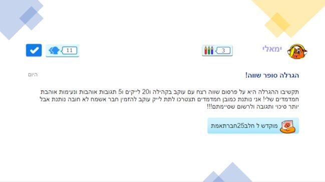 מושלם!! יש בקהילה שלי תחרות שת”פ שלי ושל ליאת המנהלת אשמח שתשתתף/י(: |
