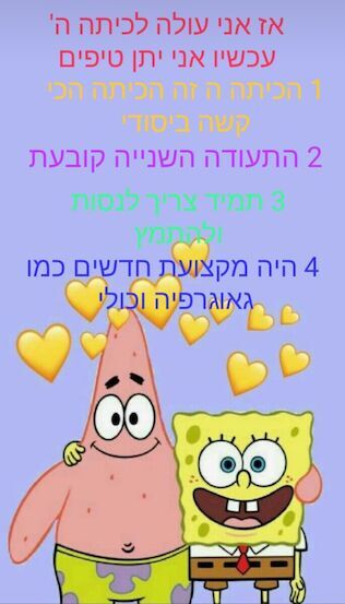 אז כמו שאמרתי עוד מעט אני עולה לכיתה ה' אז מי שעולה גם ל ה נתתי טיפים אח שלי הגדול עבר את זה וסיפר לי על כיתה ה' ומה עושים שם הכי חשוב שתצליחו בלימודים תהיו בריאים ותסיימו וזהו אשמח שתתנו לי עוד טיפים עם כן תודה רבה ♥️♥️♥️♥️♥️♥️