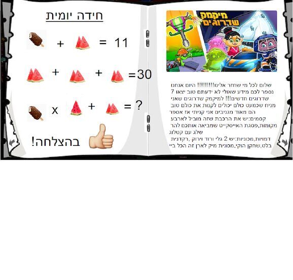 אני אענה עלך החידה אפילו שלא צריך ^-^ ארטיק = 1 אבטיח = 10 התוצאה = 20 :) |
