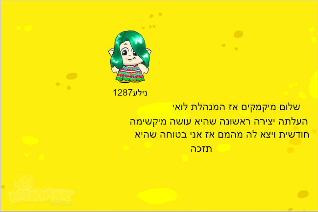 סליחה להרוס לך פשוט זה היה בטעות XD מיקמקית שלחה את היצירה וזה נשלחה על לואי , אבל הם תקנו את זה ... אבל לא נורא! אני בטוחה שליאת תשתתף במיקימה מתישהו :) |