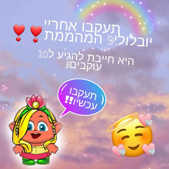היוש מיקמקים!♡ מה קורה?! אז ככה יש מישהי שאני ממש אוהבת ואני מכירה אותה אישית אפילו שקוראים לה: יובלולי9!♡ היא מהממת ואני ממש אוהבת אותה♡ אז בבקשה ממכם תעלו אותה ל10 עוקבים תודה לכל מי ששם לה עוקב אוהבת עד השמיים♡ כיפי32