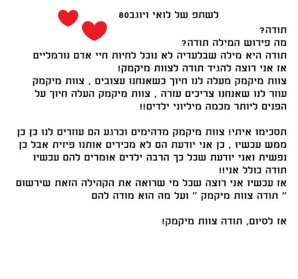 היי חברים אני יודעת שאני מעלה בתקופה הזאת מלא קהילות אבל זה בגלל שאני בכל כך הרבה חופשות וסידורים שאני צריכה לארגן בימים הקרובים אז אני מעלה את הקהילות בתקופות יותר מצומצמות. ולעניניינו כמה שתפים יש לאחרונההההה ואני מנסה להשתתף בכמה מהם אז הנה ! מכל השתפים זאת עבודת השתפ הכי הכי מיוחדת וחשובה , תודה! שתפ שאפשר להסביר במילה אחת אזזזז בהצלחה לכולם ותודה לכם עוקבים שלי
