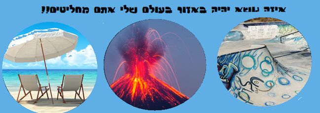 האפשרויות הן:סקייטפארק,חוף ים, והרי געש