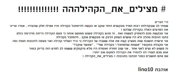 צודקת אני לא אוהבת שכותבים את זה כי כאילו עשינו יצירה מושקעת מדהימה ואז בסוף אומרים לנו " אשמח אם תסתכלי בקהילה שלי" זה מוריד את האנשים וגורם להם לעצב רב , קבלתי לא מאט תגובות כאלו.. ואני מבינה שגם את וכמאט כל הקהילה ... ולכן אני כותבת # מצילים_ את _ הקהילה !! |