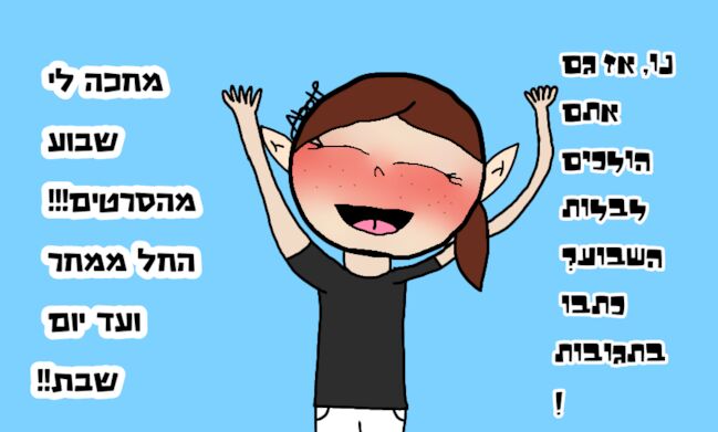 איך עובר עליכם סוף סוף השבוע? (סוף סוף השבוע זה יום שבת :) וכנראה שהמצאתי את זה עכשיו XD).
