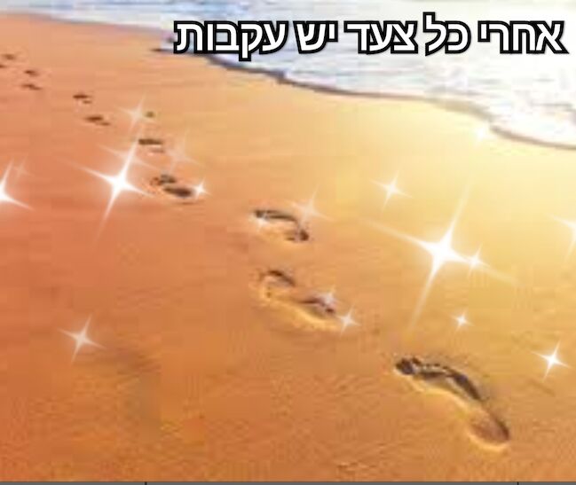 אחרי כל צעד יש עקבות רק אם אתה הולך על החול בבית אתה לא רואה בכל מקום עקבות ככה על כל הריצפה |