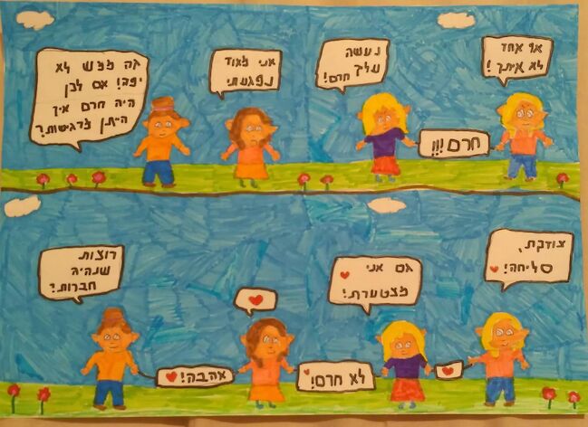 היי מיקמקים, מה מתמקמק? זאת היצירה שלי לבלוג הפרס, היצירה היא שני חלקים שבהם הסיפור ביצירה. ומה שביצירה זה שתי מיקמקיות שעושות חרם על מיקמקית וחברה שלה עוזרת לה, אז הבנות עושות חרם ואז החברה אומרת שאם היה להן חרם איך הן היו מרגישות? ואז הבנות מבקשות סליחה וכולן חברות. המסר שביצירה שלי הוא שלהחרים זה לא יפה ולא נעים למי שמחרימים אותו. טוב אז זאת היצירה שלי מקווה שאהבתם. אז ביינתיים סוף חופש נעים לכל צוות מיקמק ולכל המיקמקים.