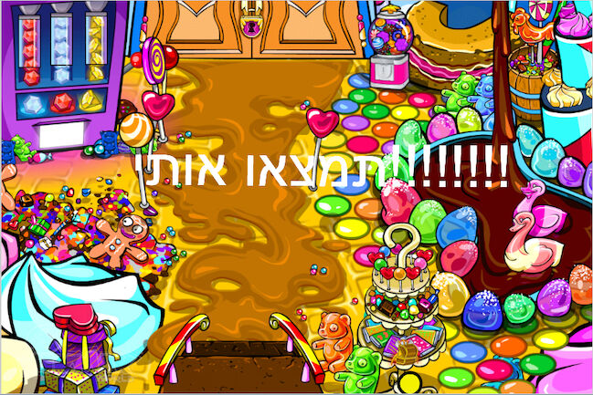מצאתי! את ליד המתקן של הממתקים ליד הדובונים ויש עליך תיבה { את במתקן שליד אגם השוקולד בכניסה } |