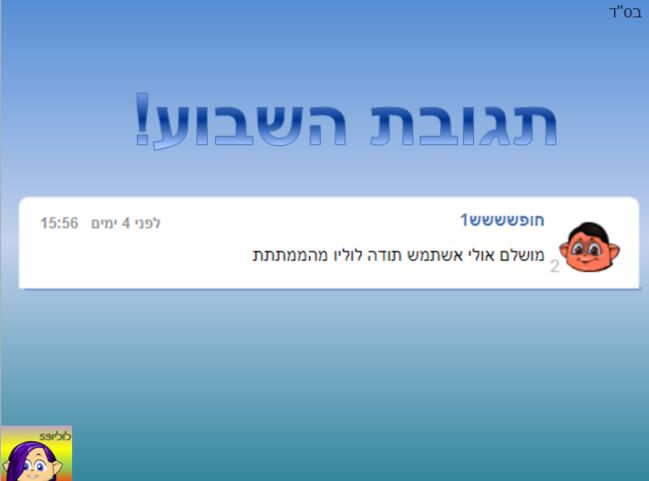 אז היום, הזוכה בתגובת השבוע הוא... היא...