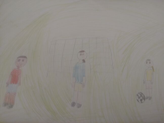בציור רואים אותי (בשער) ועוד שני חברים שלי משחקים כדורגל. הציור הזה לא סתם ציור.