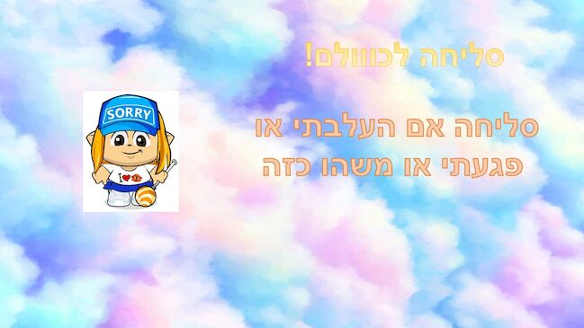 היי קרטיבונימוש מה קורה? יצירה מהממת קודם כל! ורעיון נהדר לבקש ככה סליחה מכולם |