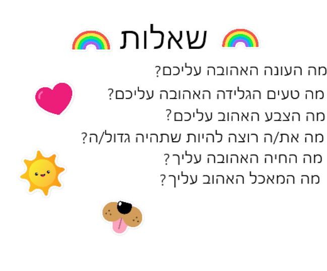 אממממ קיץ-יש לי יום הולדת קינדר טורקיז-מה? זה צבע מהמם אמממ נראה לי כוכבת במה כי אני אוהבת גם לשיר גם לרקוד וגם לשחק (כאילו על במה) כלבב על בטוח סושי!! (יואו עכשיו עשית אותי רעבה) אוהבת ואשמח עם תעקבו בקהילה שלי❤ |
